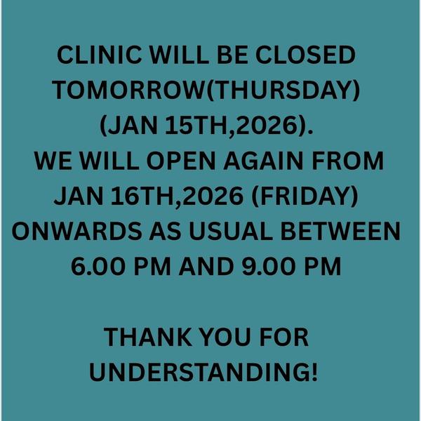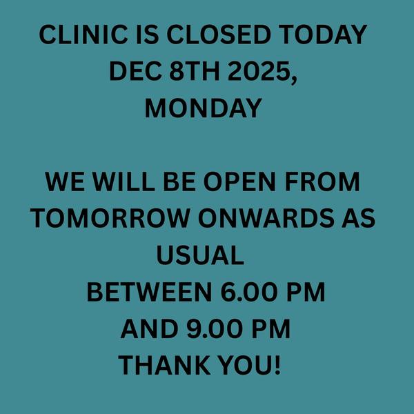 Clinic will be closed on April 2nd and 3rd, 2026
