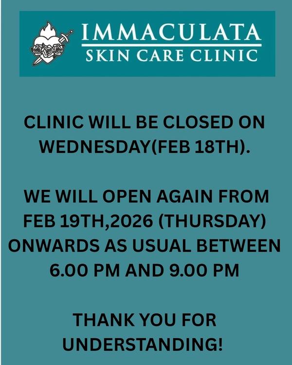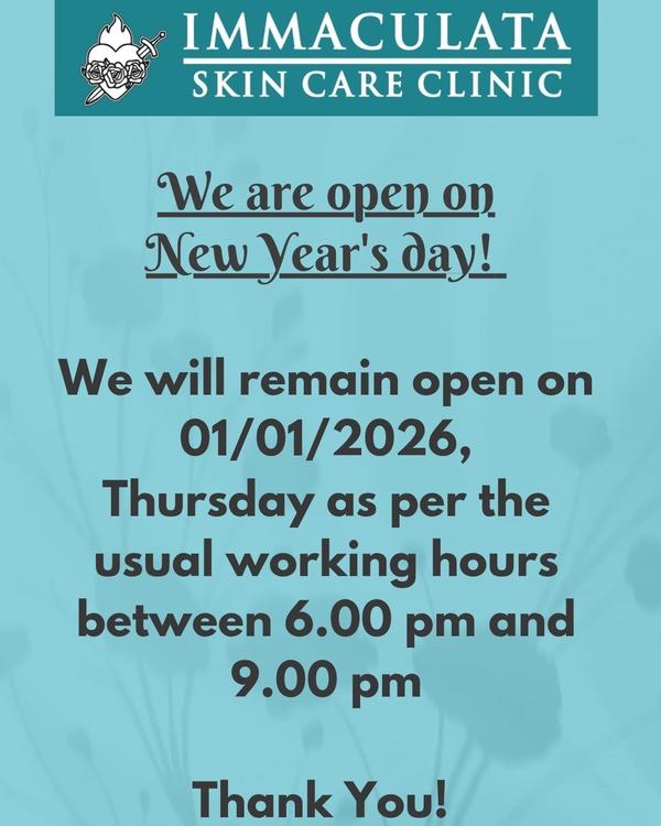 Immaculata Skin Care Clinic will be open on New year's day, Thursday